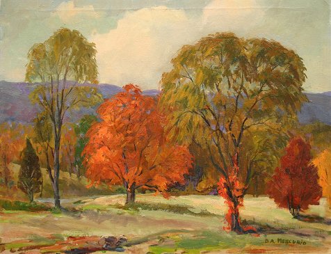 MERCURIO, D.A., (American, 20th C): ''Autumn Afternoon'', O/C, 14'' x 18'', signed lower right, unframed, label affixed verso with artist name and title.