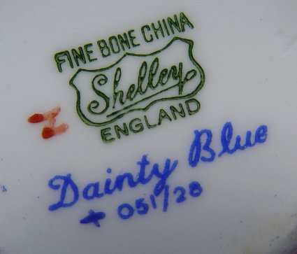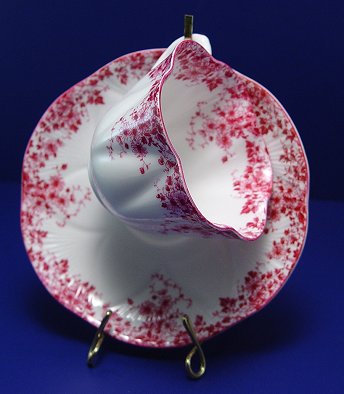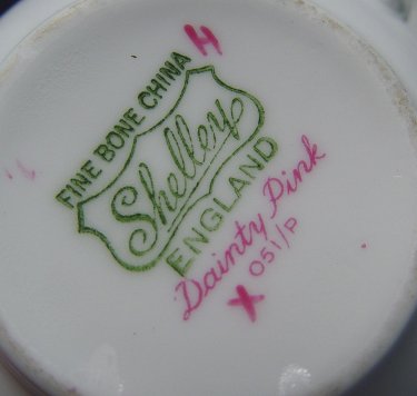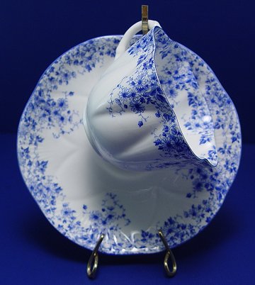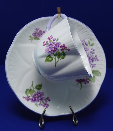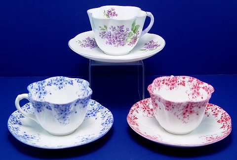 THREE SHELLEY FINE BONE CHINA CUPS AND SAUCERS: In the ''Dainty Blue'', ''Lilac Time'', and ''Dainty Pink'' patterns.