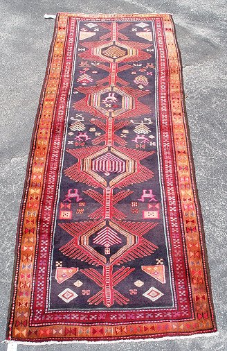 HAND MADE ANTIQUE CAUCASIAN RUG: Approx. 9'8'' x 3'7''