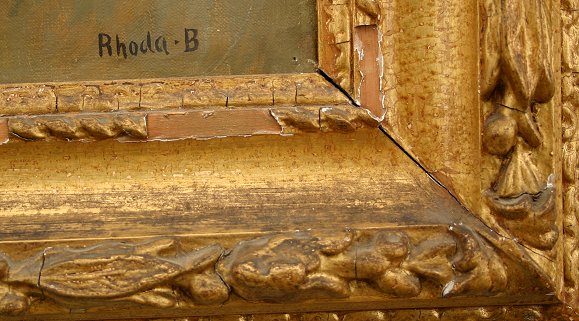MARE & FOAL O/C: Signed LR RHODA B., possibly Irish in origin, 17'' x 22'', encased in an earlier gilded frame with wear and missing gesso, 24 1/2'' x 29 1/2''.