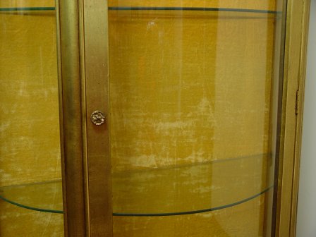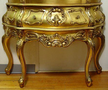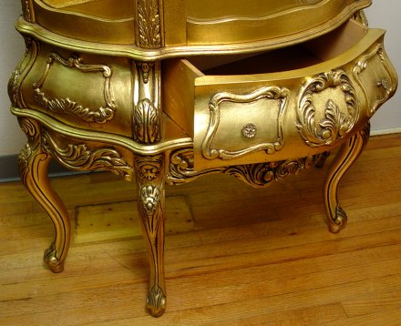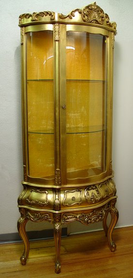 FRENCH STYLE GILT CURIO CABINET: Glass shelves and illuminated interior. 85''h X 35w''
