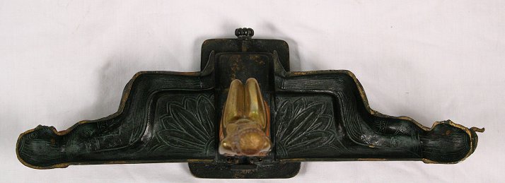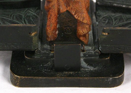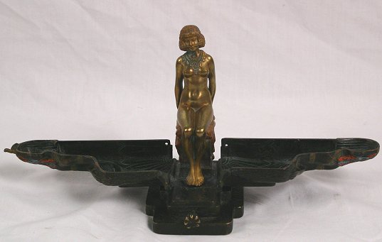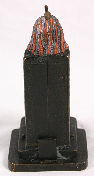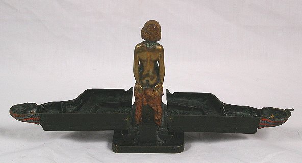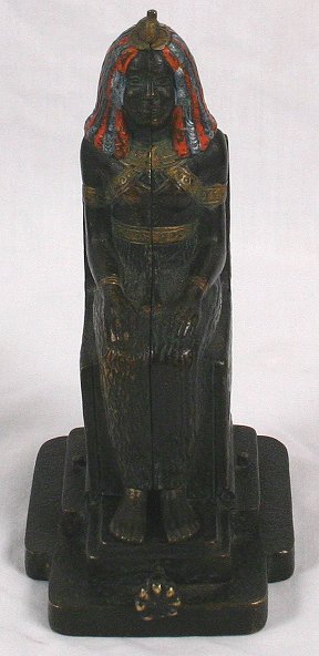 BERGMAN AUSTRIAN BRONZE MECHANICAL NAUGHTY NUDE: Egyptian motif with nude figure hidden inside Egyptian queen. Signed with the Bergman B in urn, Made in Austria. Paint is still vibrant, good working condition. 5 1/2 h.''. Est. $3000/5000**