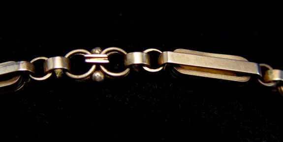 GENTLEMAN'S 14K ROSE GOLD WATCH CHAIN: 11''l., oblong caged link, assay 14k, 19.5 grams.