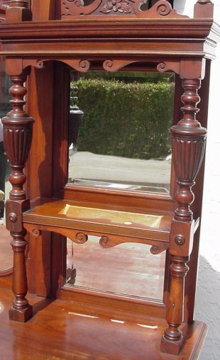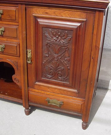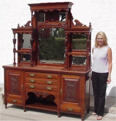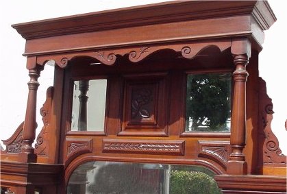 LATE VICTORIAN WALNUT SIDEBOARD WITH MIRROR: Nicely carved with scrolling crest. 71'' w x 90'' h