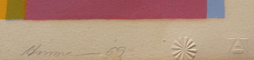 HINMAN, Charles, (American, 1932-): Untitled, three-color lithograph, sight size 19 ½'' x 28 ½', signed LR, dated `69, ed size: 60; X. Condition - Spots and minor staining throughout.