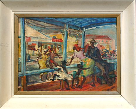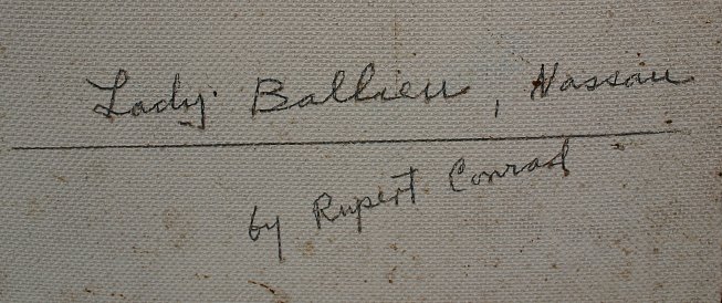 CONRAD, Rupert, (American, 1907-1979): ''Lady Ballieu, Nassau'', O/Masonite, 18'' x 24'', signed lower right, signed and titled verso, encased in original white painted frame with wear.