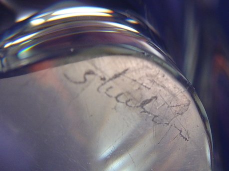 STEUBEN CRYSTAL VASE: Flare rimmed vase. Etched Steuben signature. 6 1/2''h, 8'' dia.