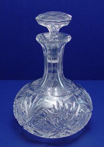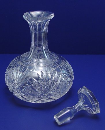 SIGNED HAWKES BRILLIANT CUT GLASS DECANTER: With stopper, 9''h., acid etched Hawkes hallmark.