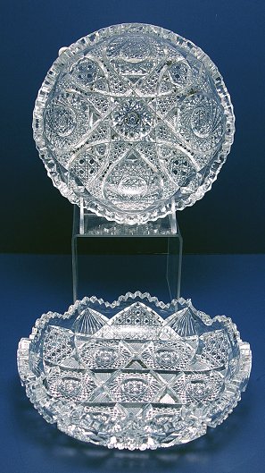 CLARK AMERICAN BRILLIANT CUT GLASS BOWL: Signed with the maple leaf. 8'' dia., 2''h. No chips or cracks. Sold with a second brilliant cut glass bowl, just as fine, though unsigned and with chips.