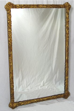 CARVED GILT WOOD FRAMED MIRROR: Layered leaf motif, 55'' x 35''. Earlier 20th C.