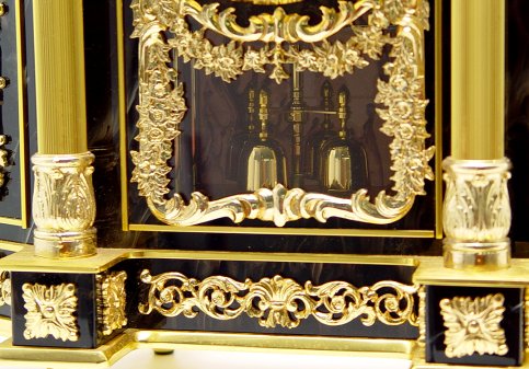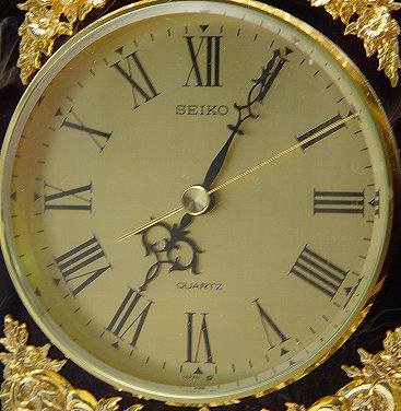 DECORATIVE FRENCH STYLE SEIKO MARBLE MANTLE CLOCK: Quartz movement in a modern rendition of an antique clock. Faux marble. 18''h, x 15'' x 7''.