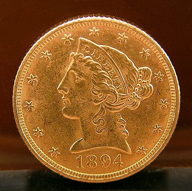 1894 LIBERTY FIVE DOLLAR GOLD COIN, 8.2 grams