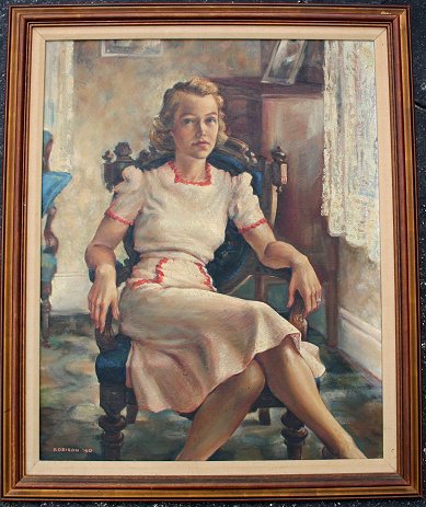 ROBISON, (American, 20th C.): ''Caroline'', O/C, 30'' x 24'', signed lower left and dated 40', label affixed verso, worn original frame.