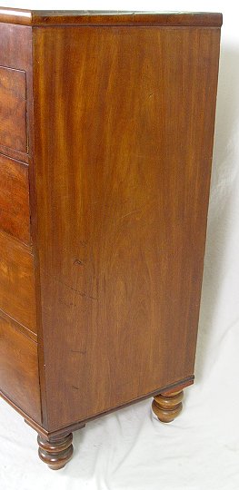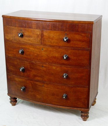 A HANDSOME MAHOGANY BOWFRONT CHEST: Two over 3 drawer bowed chest of fine mahogany. Pulls are center with mother of pearl. 47 1/2''h, x 42 1/2'' x 21''. Est. $1200/1500**