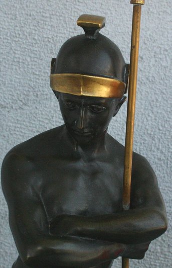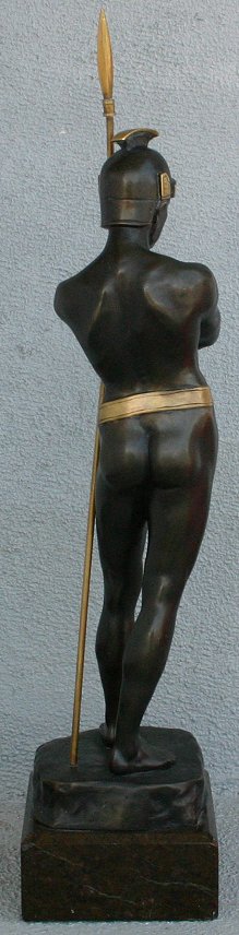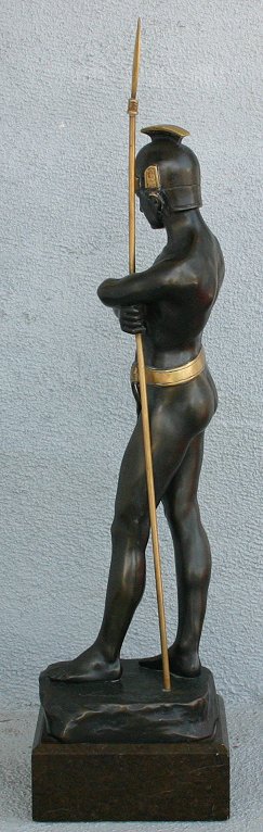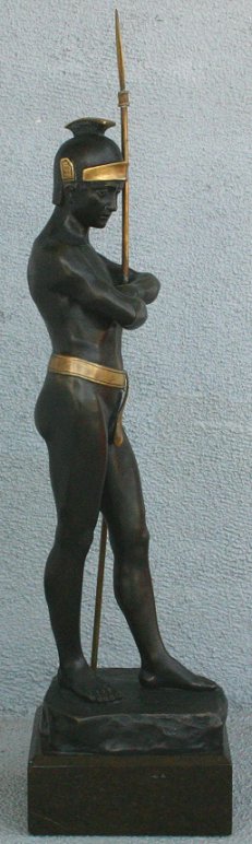 SCHMIDT-FELLING, (German, 1895-1930): Warrior With Spear, Bronze, 21 1/2''h., polished marble plinth, signed on the base. Condition - Minor wear, slight bend in spear, small chips and scrapes to plinth. Est. $800/1200**