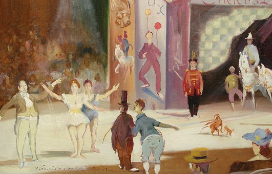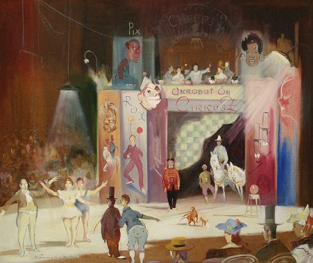KOMPOCZY, Endre Balogh, (Hungarian 1911-1977): ''Circus'', O/C, 20'' x 24'', signed lower left, superior condition, period frame.
