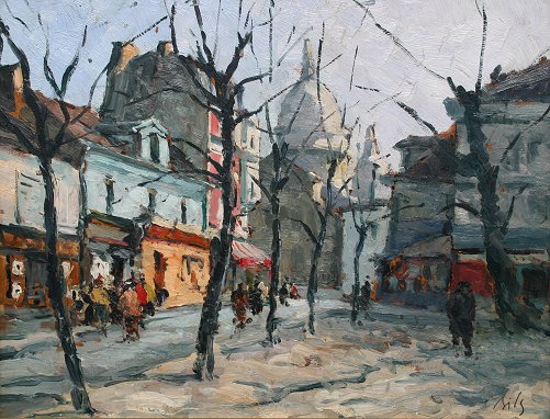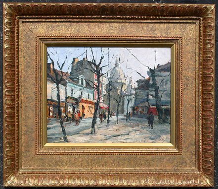 BILS, Claude, (French, 1884-1968): Parisian street scene, O/Masonite, 10 1/2'' x 14'', signed lower right, encased in heavy gilt molding. Condition - minute paint fleck in left margin.