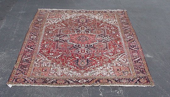 SEMI ANTIQUE HAND TIED HERIZ CARPET: Approx. 9'10'' X 12'10''.