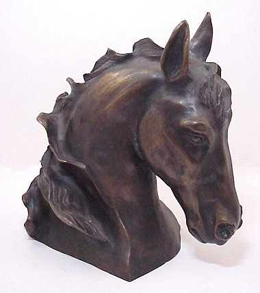 20th CENTURY BRONZE BUST OF HORSE: 11'' Height, no visible signature, attractive casting.