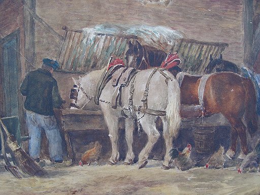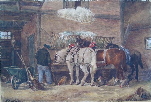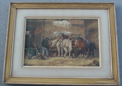 NAKKEN, Willem Carel, (Dutch, 1835-1926): Stable Scene, W/C, 13'' x 19 ¼'', SLL, painted frame w/minor wear, 22 1/2'' x 29''. Condition - Laid on board, several specks of insect damage.
