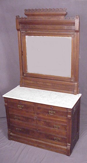 VICTORIAN MARBLE TOP DRESSER WITH CARVED FRAMED MIRROR