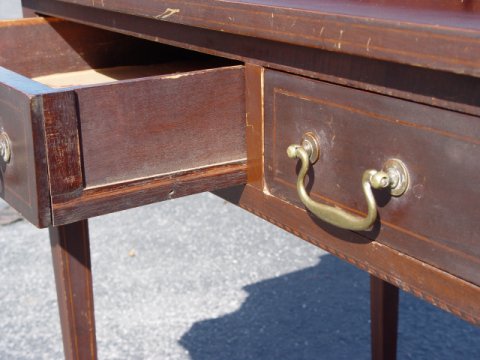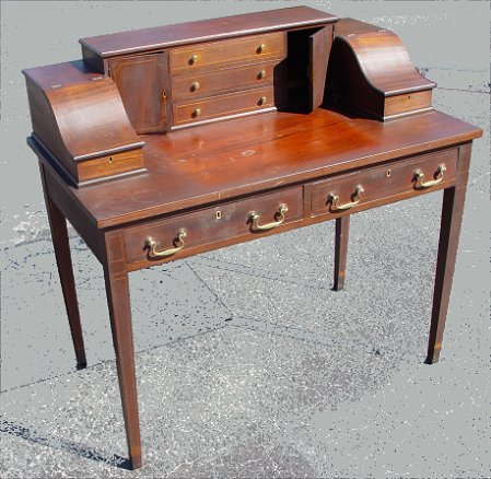 MAHOGANY CARLTON HOUSE DESK: First quarter 20th century. String inlay throughout. Alligatored finish. 39 1/2'h. x 41'' x 24''. Est. $750/850**