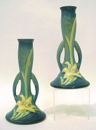 PAIR OF ROSEVILLE BLUE ZEPHYR LILY VASES: #201-7''. No chips or cracks.