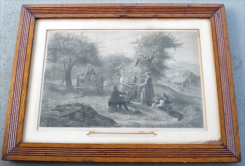 RITCHIE, Alexander Hay, (American 1822-1885): ''The Apple Gathering'', Engraving, 18 1/2'' x 28'', encased in original wood molding, 29 1/2'' x 39'', sold with correspondence regarding research of the piece to the Metropolitan Museum of Art.
