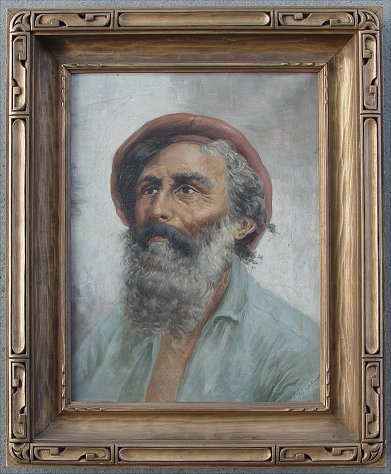 BERLINGIERI, (Italian, 20th C): Portrait of a bearded man, O/C, 17'' x 13'', signed lower right, encased in nice impressionist carved and gilded molding, 22 1/4'' x 18 1/4'', some wear to gilt. Condition - Needs cleaning, some craquelure and scrapes.