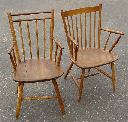 PR EARLY WINDSOR CHAIRS BAMBOO MOTIF: 19th C, one board plank seat, 32''h.