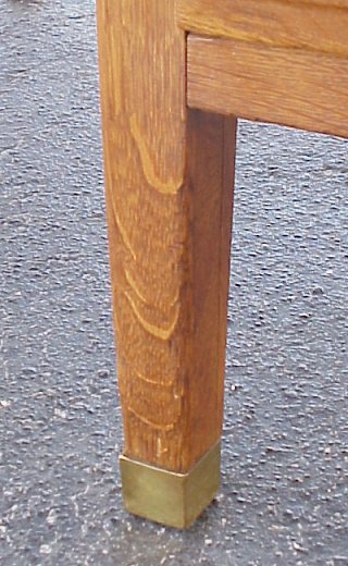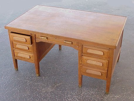 GOLDEN OAK ARTS AND CRAFTS EXECUTIVE DESK: Ca. early 1900's. Knee hole desk in heavily grained oak. 31''h, ample surface space at 36'' x 60''.