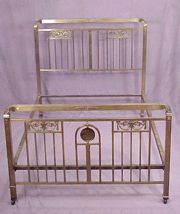 ANTIQUE FRENCH STYLE BRASS BED: 52''h. headboard, 36'' footboard. 55''. Rails of course.