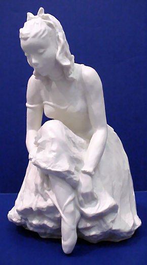 ROSENTHAL FIGURE ''SHOE BINDER'' 1770: Designed by Friedrich-Gronau. All white matt glaze on this dancer. This particular model has the interesting effect of being carved from stone. 10 1/2''h.