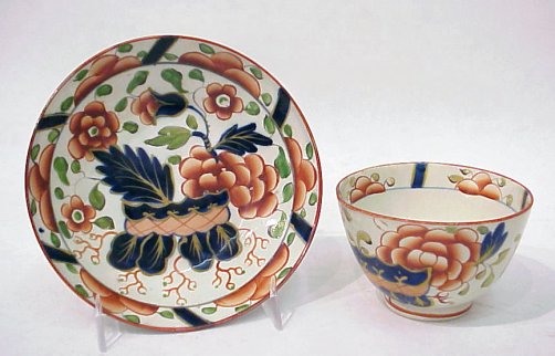 GAUDY DUTCH ''WAR BONNET'' CUP AND SAUCER: Handleless cup with saucer. No chips or cracks.