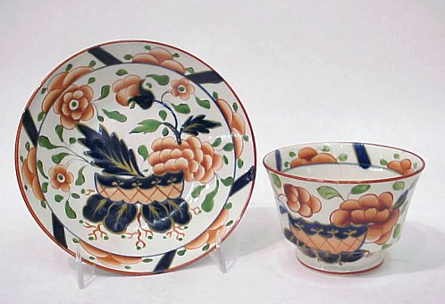 GAUDY DUTCH ''WAR BONNET'' CUP AND SAUCER: Handleless cup with saucer. Minute chip on underside of cup and saucer.
