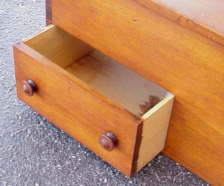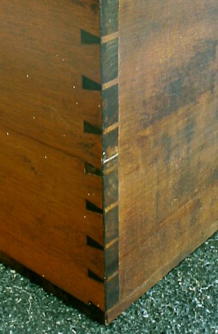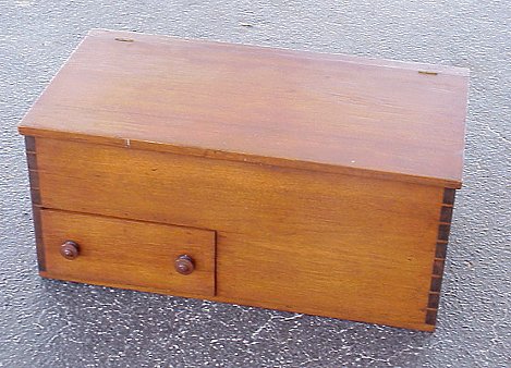 CHILD'S BLANKET CHEST CA. 1800'S: Wide 1'' dovetail construction, blue painted interior. One half length drawer. 14''h, x 31 1/2'' x 17''.