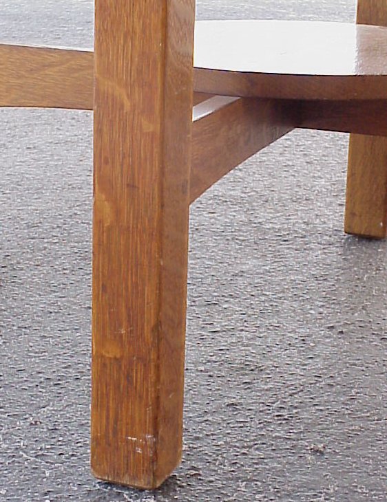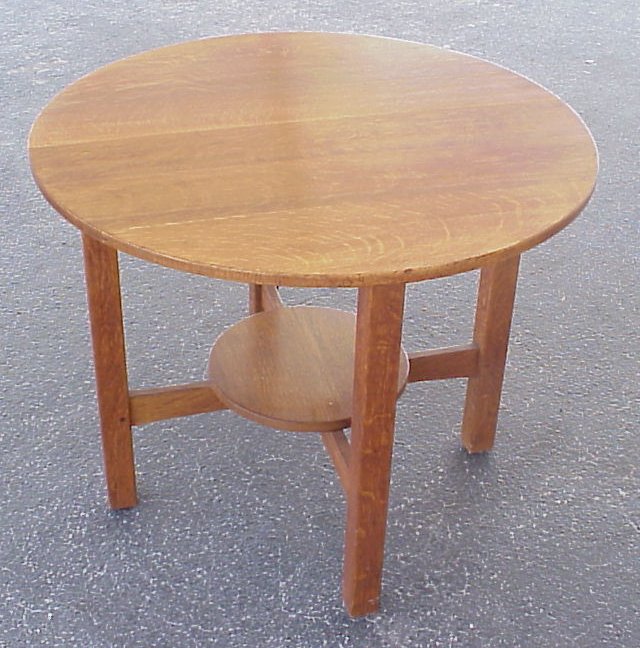 L & JG STICKLEY ARTS AND CRAFTS LAMP TABLE: 36'' dia., 29 1/8''h. lower round tier. Refinished condition.