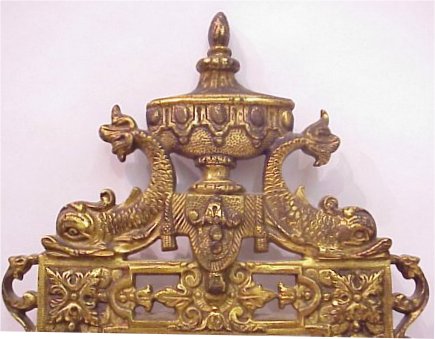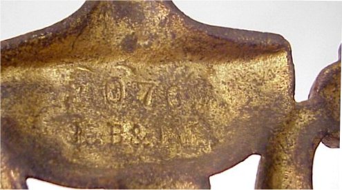 BRADLEY & HUBBARD MIRROR SCONCE: 2 light candle scone on an ornate gilt metal framed beveled mirror. Signed B&H 2076. 21 1/2'' x 10 1/2'' overall.