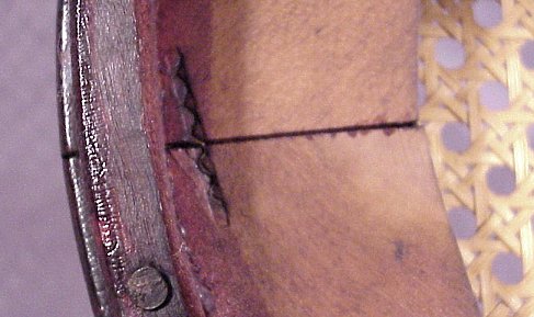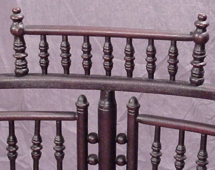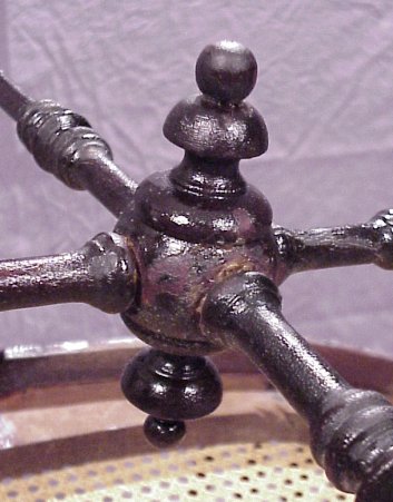 HEYWOOD BROTHERS & WAKEFIELD CO. PHOTOGRAPHER'S CHAIR: Ca. 1897-1900. Petite mahogany spindle frame in original alligatored finish. Oval shaped caned seat in excellent condition. 32 1/4''h. 27''w, 17 1/2''deep. Paper label.