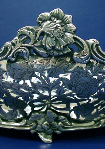 SCHNAUFFER DRESDEN 800 SILVER BASKET: Pierced with flowers, rim and base in heavy floral ornamentation, raise on feet. 11 3/4''l, 4 1/2''h. Hallmarked with the German moon and star, 800, G. Schnauffer. Approx. 36.65 oz.