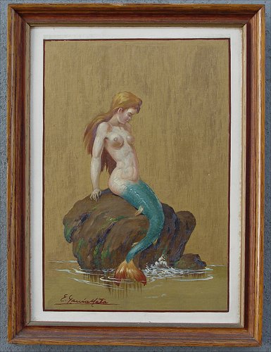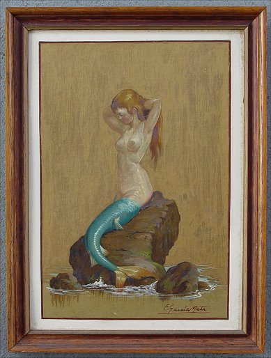 MATA, E. Garcia, (Cuban, 1910-1985): ''Sirenitas'', pair of mermaid O/Bs, 14 1/2'' x 10 1/2'', signed lower right, titled verso, dated 61.