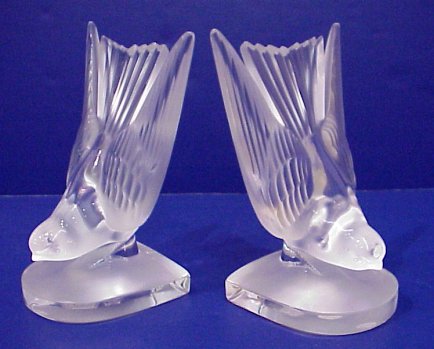LALIQUE HIRONDELLE SWALLOW BOOKENDS: French crystal bookends in the form of a bird. Script signature ''Lalique France'' and Made in France paper label. 6 1/4''h. Free of chips or cracks.