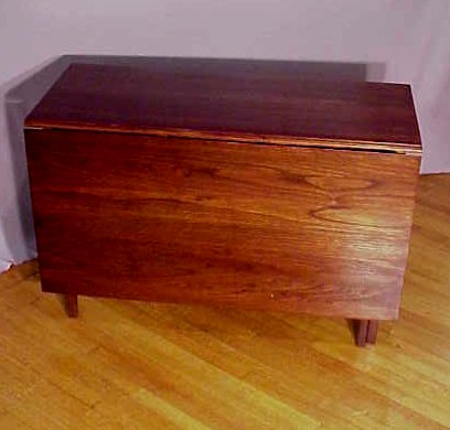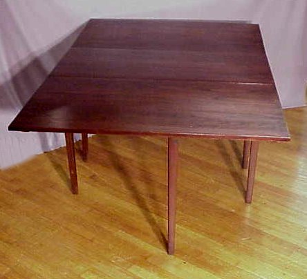 EARLY NEW YORK ROSEWOOD DROP LEAF DINING TABLE: Solid walnut with straight slightly tapered swing legs. Approx. 30 1/4''h, x 47'' x 68''. When leaves are down it is 21''w. Seats 8-12.