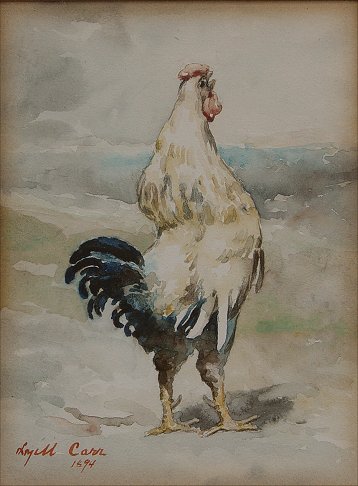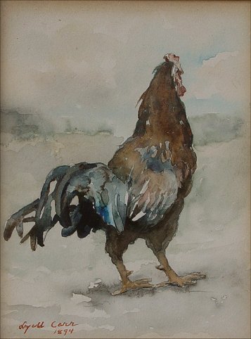 CARR, Lyell, (American, 1857-1912): Pair of Studies of Roosters, W/C, 8'' x 5 3/4'' sight size, both are signed lower left and dated 1894. Encased in original worn gilded moldings, 14 1/4'' x 12 1/4'' overall.