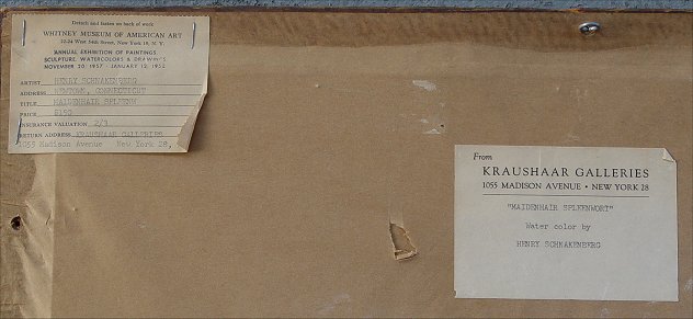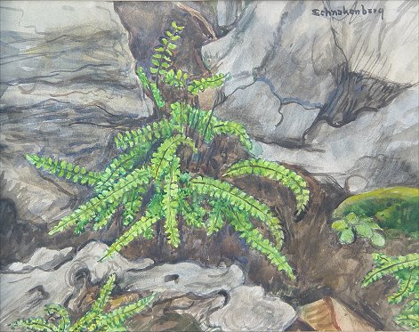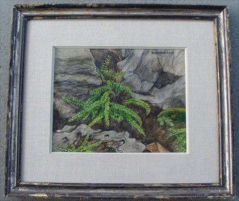 SCHNAKENBERG, Henry Ernest, (American, 1892-1970): ''Maidenhair Spleenwort'', W/C, sight size 10'' x 12 3/4'', signed upper right, Whitney Museum of American Art 1957 label affixed verso, Kraushaar Galleries label affixed verso, encased in original distressed gilded molding, 19'' x 21 3/4''. Est. $600/800**