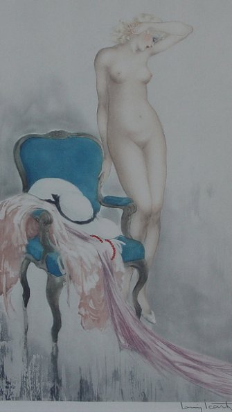 ICART, Louis, (French, 1888-1950): ''The Fair Model'', imp. size 19 ½'' x 11 _'', SLR, embossed LL, full margins, sight size 24 1/2'' x 15 1/2'', windmill stamp LL, excellent condition, period gilt frame, 26 1/2'' x 17 1/2''.