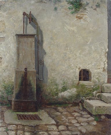 WARD, Edgar Melville, (Amer., 1839-1915): Courtyard Study, O/C, 17'' x 14'', SLR and dated 1875. Call for Condition (Has been lined, and several spots of inpaint).