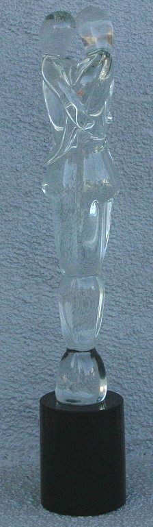 BADIOLI, Mario, (Italian, 1940-): ''Amanti'', sculpted glass, 15''h., signed on the base and bears the Oggetti label. Condition - Several flea bite marks to the black glass base.