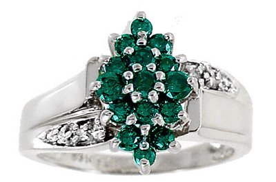 LADY'S TEAL GREEN DIAMOND CLUSTER RING: This elegant and attractive teal green diamond ring features .50cttw of sparkling bright fancy colored diamonds clustered in a marquise shape with white diamond accents down the split shank band. 14k white gold, size 8, 4.6 grams. Est. $400/600**