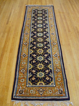 SEMI- ANTIQUE ORIENTAL RUNNER 3' X 11': Estate carpet, dark blue ground.
